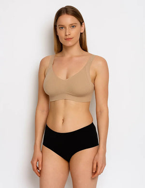 Ce soutien-gorge sans armature est conçu pour offrir un maintien optimal, un galbe naturel et un confort durable tout au long de la journée. Grâce à ses bretelles larges antidérapantes et son fermoir à quatre crochets, il assure un ajustement parfait et reste bien en place.